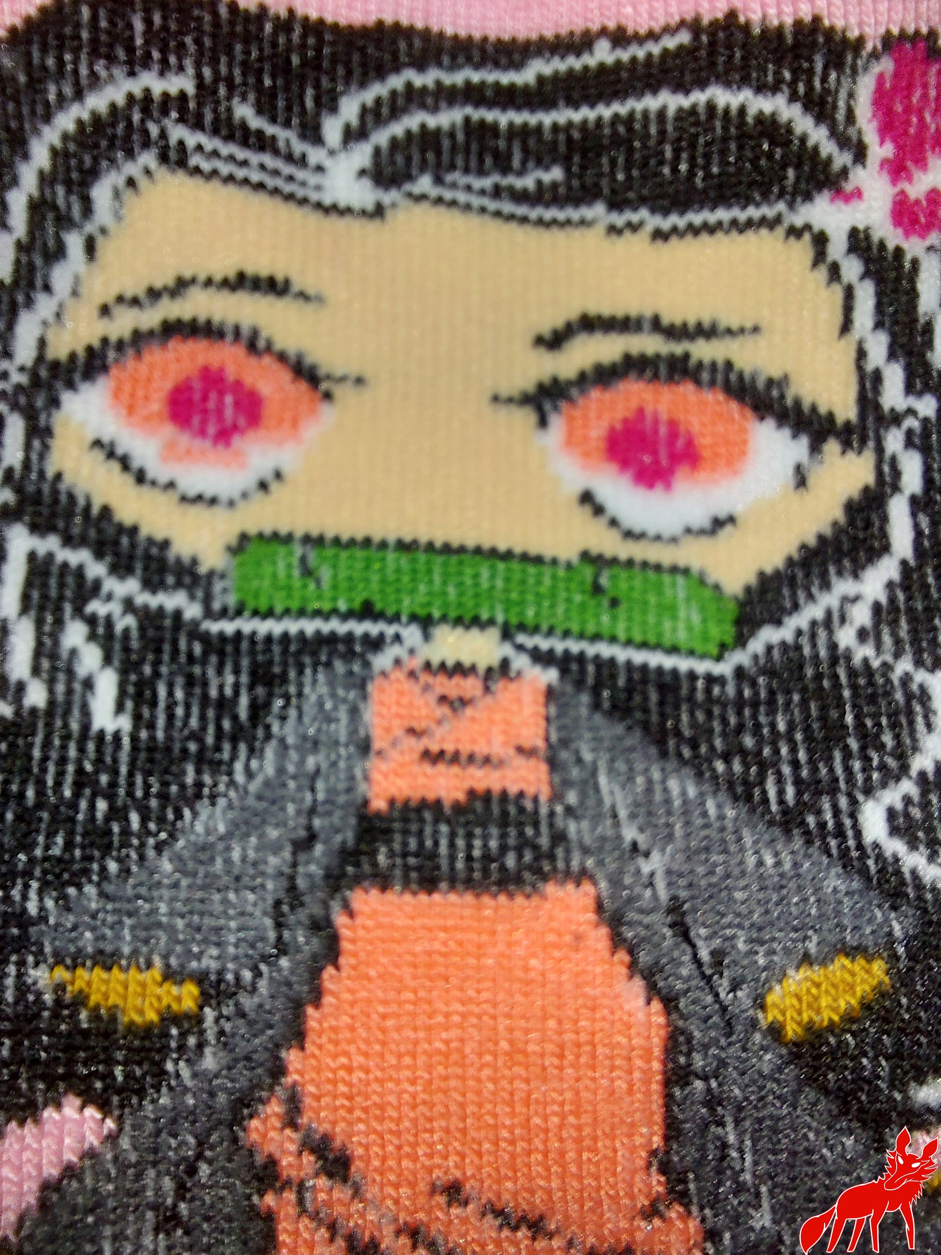 Descripción del artículo: medias cortas tipo soquete del Manga/Anime Kimetsu no Yaiba (Demon Slayer). Modelo Nezuko Kamado