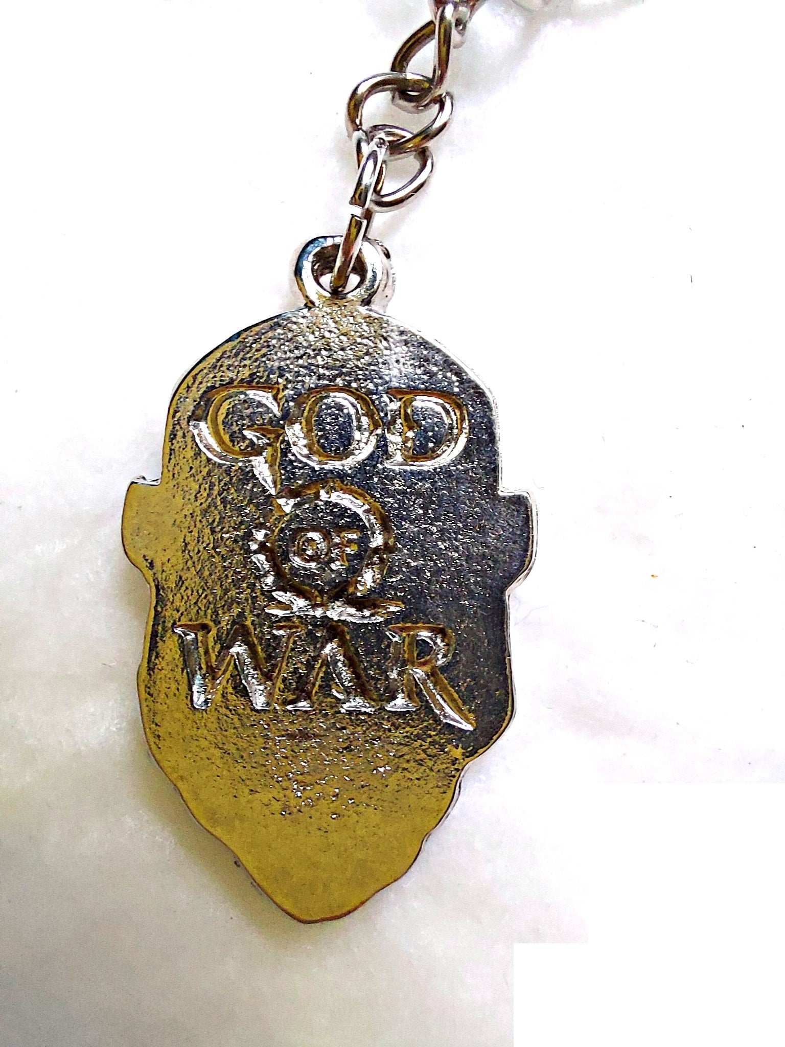 Dije "Kratos ver. GOW 4", perteneciente a la saga de videojuegos "God of War". Se puede elegir como colgante o llavero.