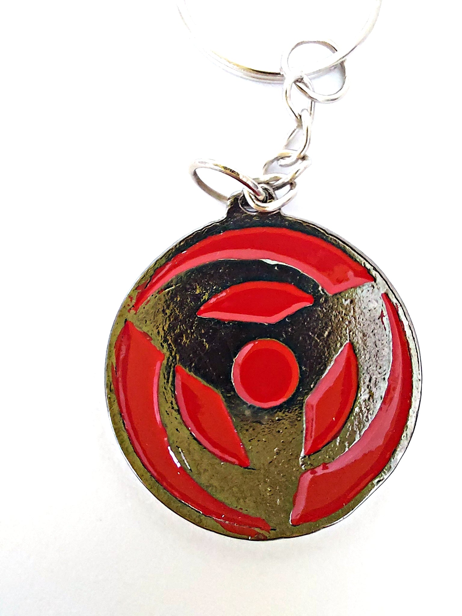 Dije doble cara "Mangekyo Sharingan Kakashi / Madara ", perteneciente al manga/anime "Naruto". Se puede elegir como colgante o llavero.