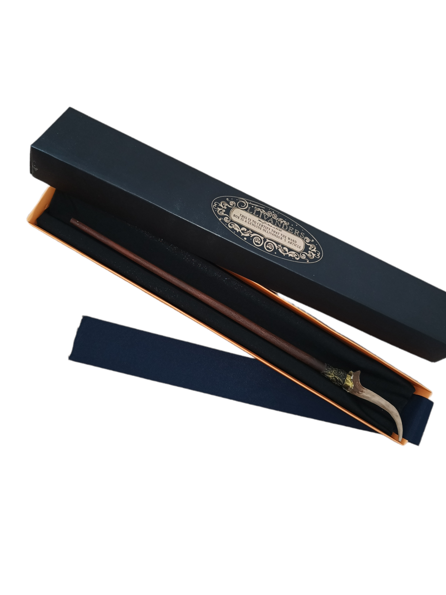 La varita se entrega en su caja de cartón, con sello de autenticidad metalizado e interior acolchado con tul (el color de la caja y acolchado puede variar según lote).