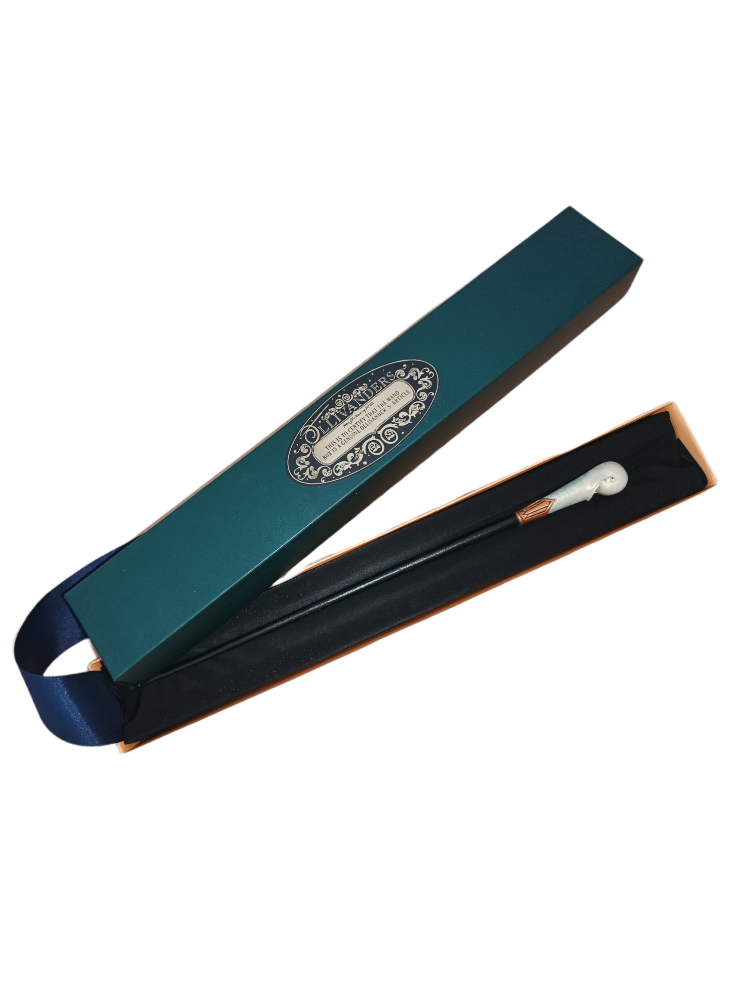 La varita se entrega en su caja de cartón, con sello de autenticidad metalizado e interior acolchado con tul (el color de la caja y acolchado puede variar según lote).
