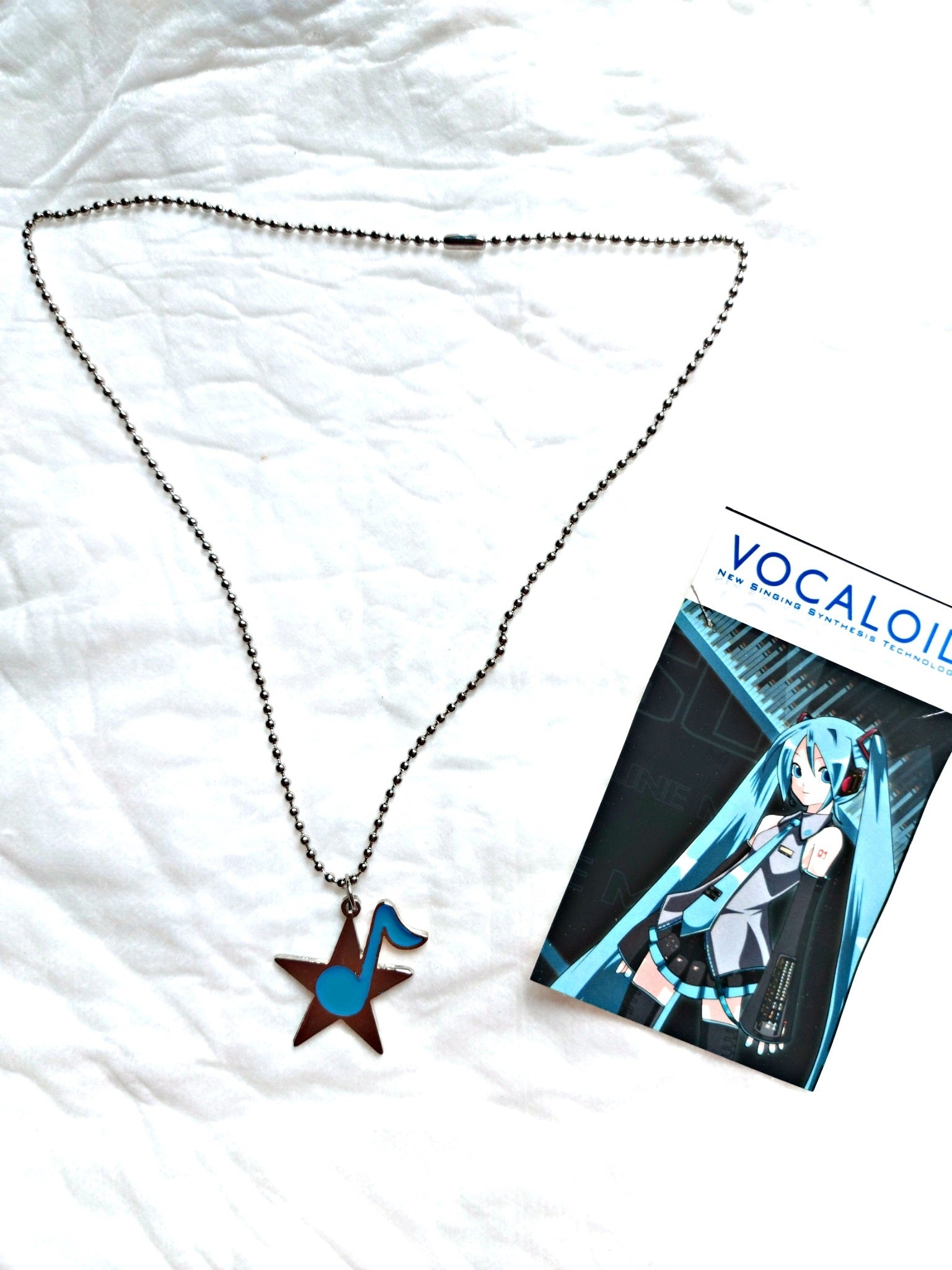 Dije "Vocaloid - Estrella con nota musical", perteneciente a la franquicia"Vocaloid". Se puede elegir como colgante o llavero.